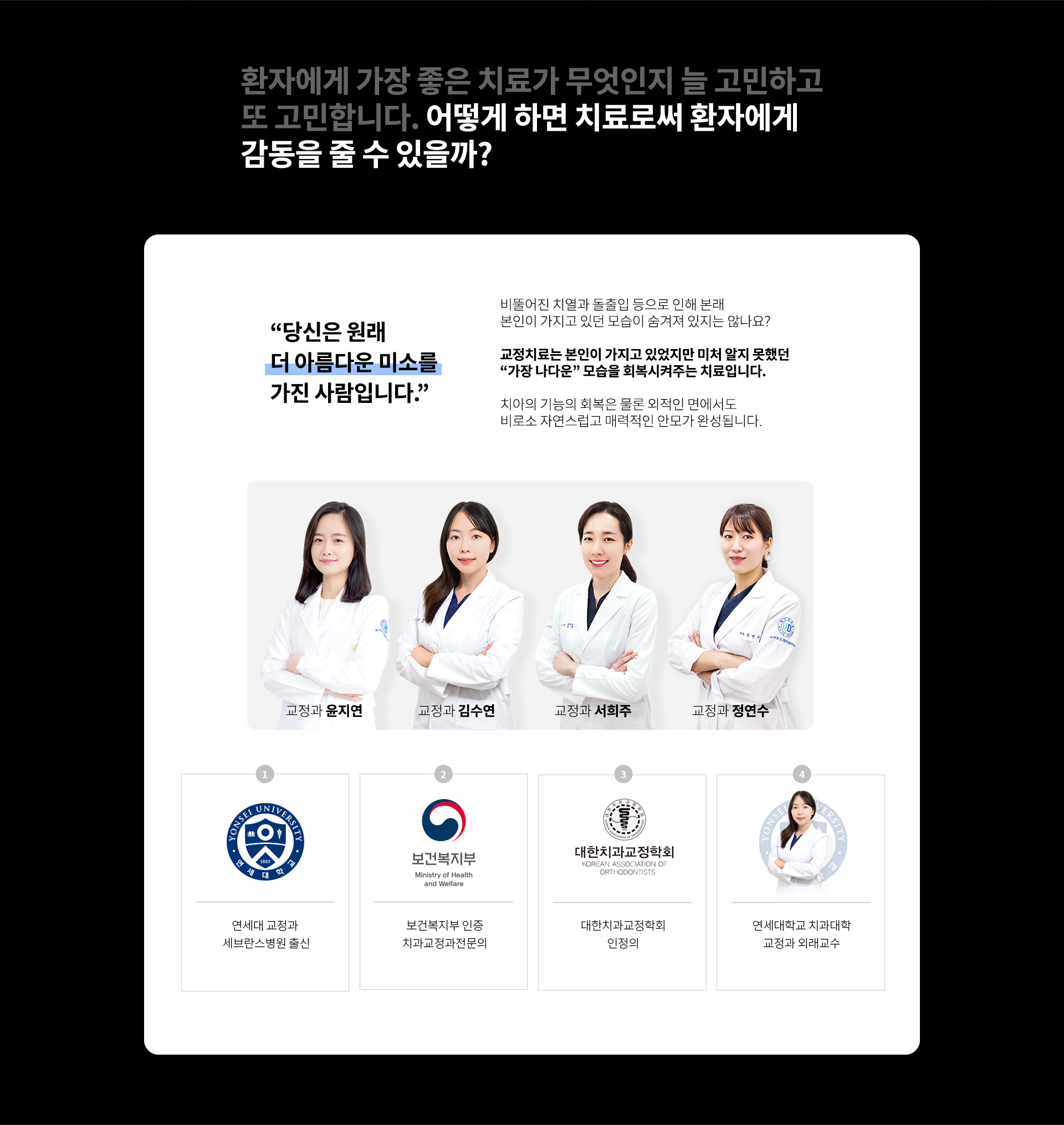 - 입을 닫았을때 몇몇의 윗니가 아랫니 안쪽으로 들어가 있는 부분을 개선합니다.