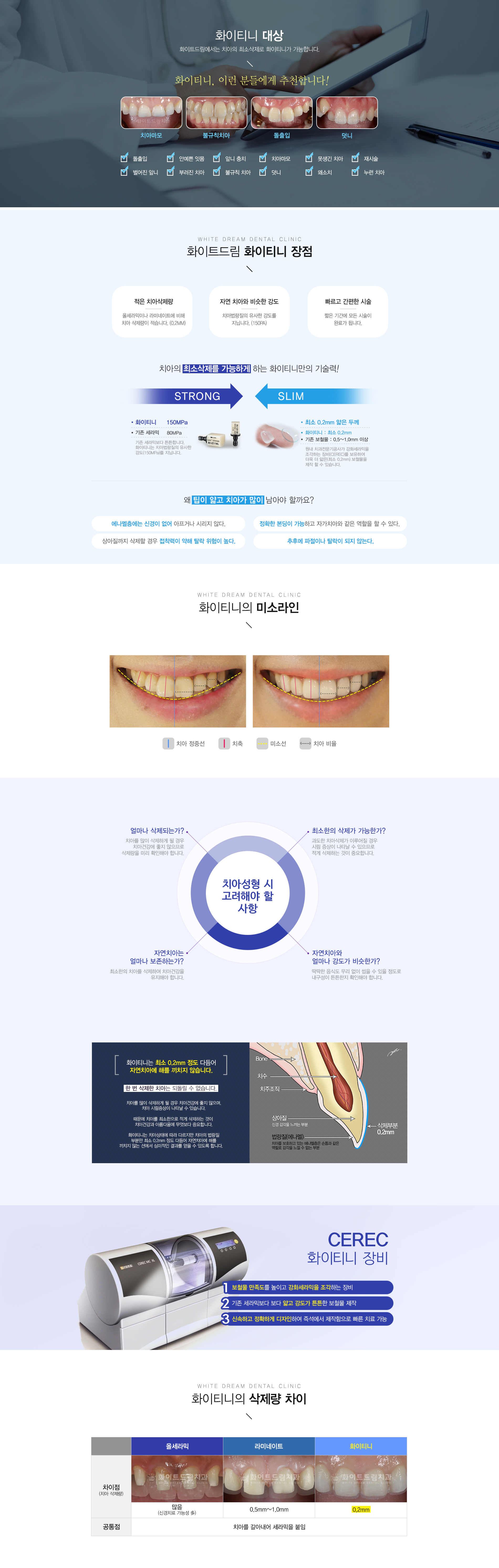 건강적인 부분 뿐만 아니라 심미적인 목적으로도 만족시키는 화이티니 시술 건강하고 아름다운 치아는 꾸준한 치아 관리가 가장 중요하지만 치아 교정이나 치아 미백, 치아 성형으로도 건강하고 아름다운 치아를 만들 수 있습니다. 최근에는 단순 치료 목적 외에도 심미적인 목적으로 치아 시술을 원하는 경우가 있는데, 이런 경우 정확한 진단과 의료진과의 상담을 통해 치아의 황금비율을 살려야만 만족스러운 치아 성형이 될 수 있습니다.