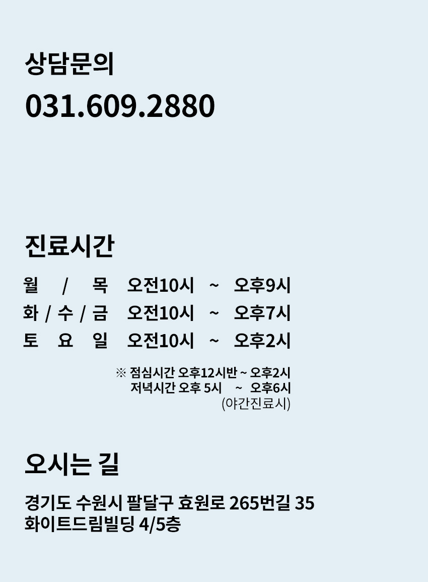 상담전화 및 예약문의  031.609.2880 빠른상담창 닫기